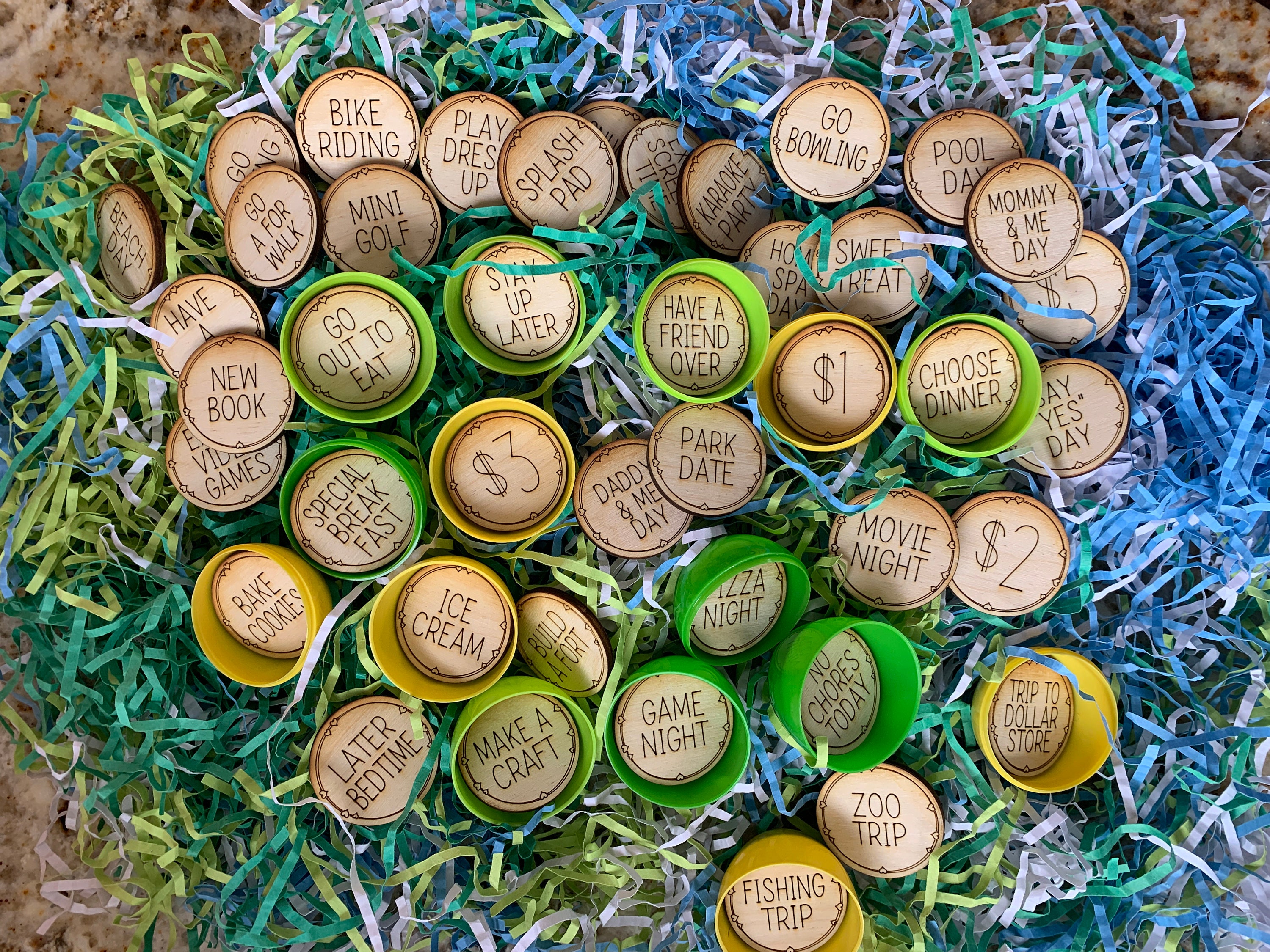 Each token features a surprise, such as extra playtime, a fun family activity, or a special treat, making Easter morning even more exciting! 🐣 Use them in egg hunts, as Easter basket stuffers, or for fun Easter hunting games.